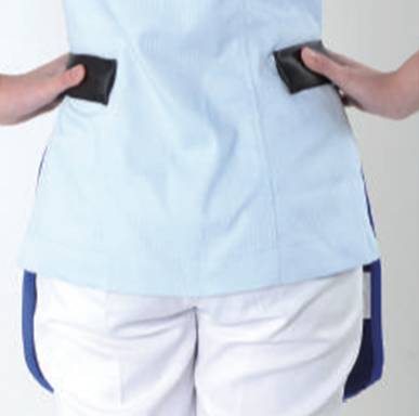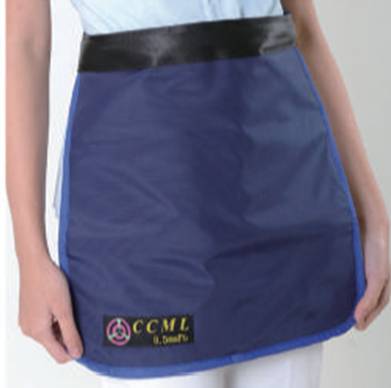 商品上方有一圈彈性鋼圈,可環繞腰部使其下防護巾阻擋於性腺前方。