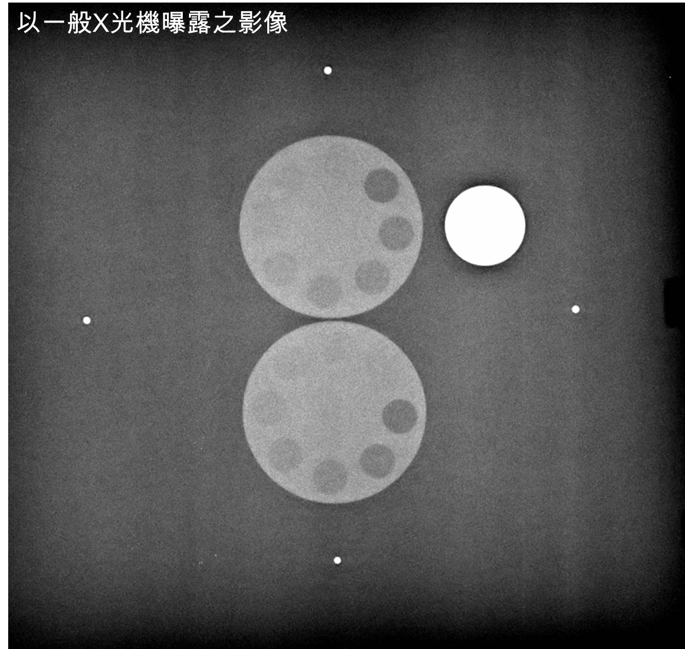 以直徑相同但深度不同的圓形測試物,評估X光機低對比偵測能力。