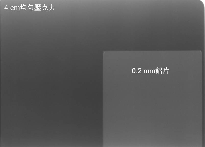 本產品包括一塊 4 公分厚度之均勻壓克力假體,以及總厚度 0.2 mm 厚度之鋁片,用於執行乳房攝影儀影像之對比雜訊比(Contrast-to-noise ratio, CNR)測試。